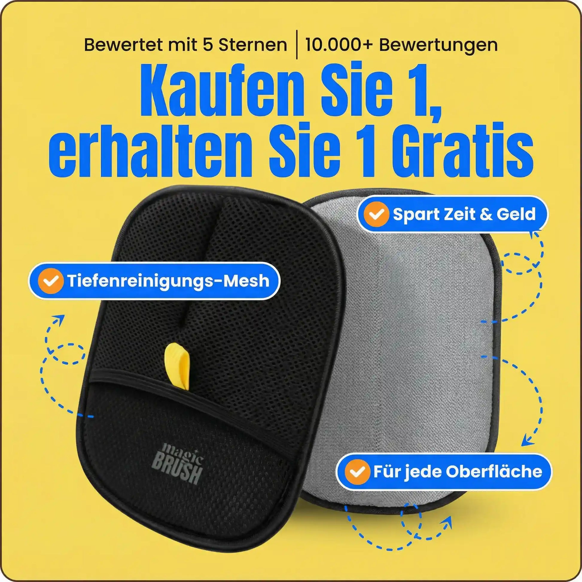 The Magic Brush™ combines durable mesh cloth backing with soft, food-grade silicone bristles. Reinforced stitching and a polyester cuff ensure long-lasting use, while the silicone resists odours and dries quickly.