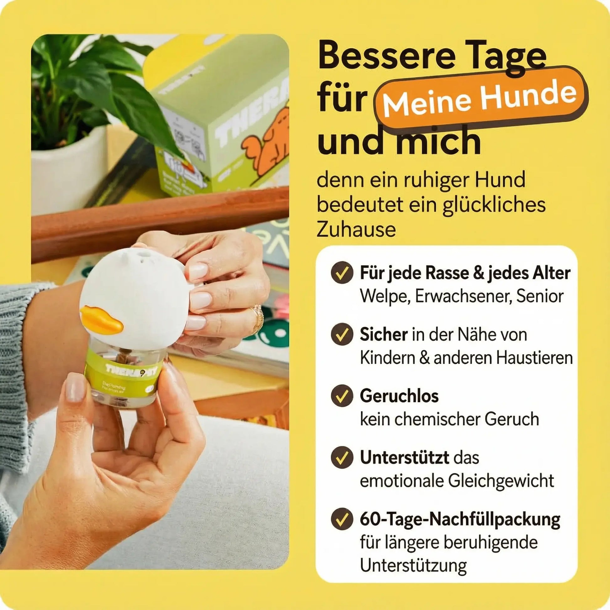Mi Schnauzer miniatura tiene 5 años y siempre hacía pipí frente a la puerta trasera. Desde que conectamos TheraPet, no ha hecho pipí ni una sola vez. Gracias, gracias, Kathy R.